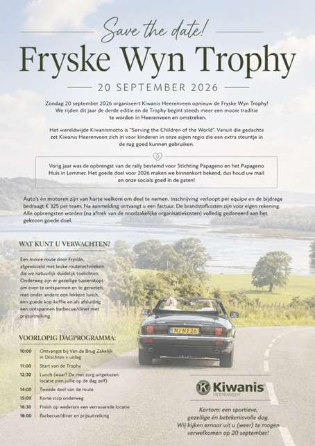 Zondag 20 september 2026 organiseert Kiwanis Heerenveen opnieuw de Fryske Wyn Trophy!